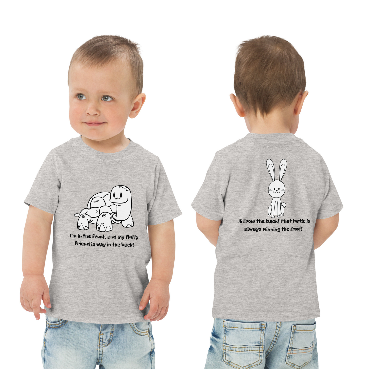 Turtle in Front , Rabbit in Back (Black Text Edition - Baby short sleeve one piece )
